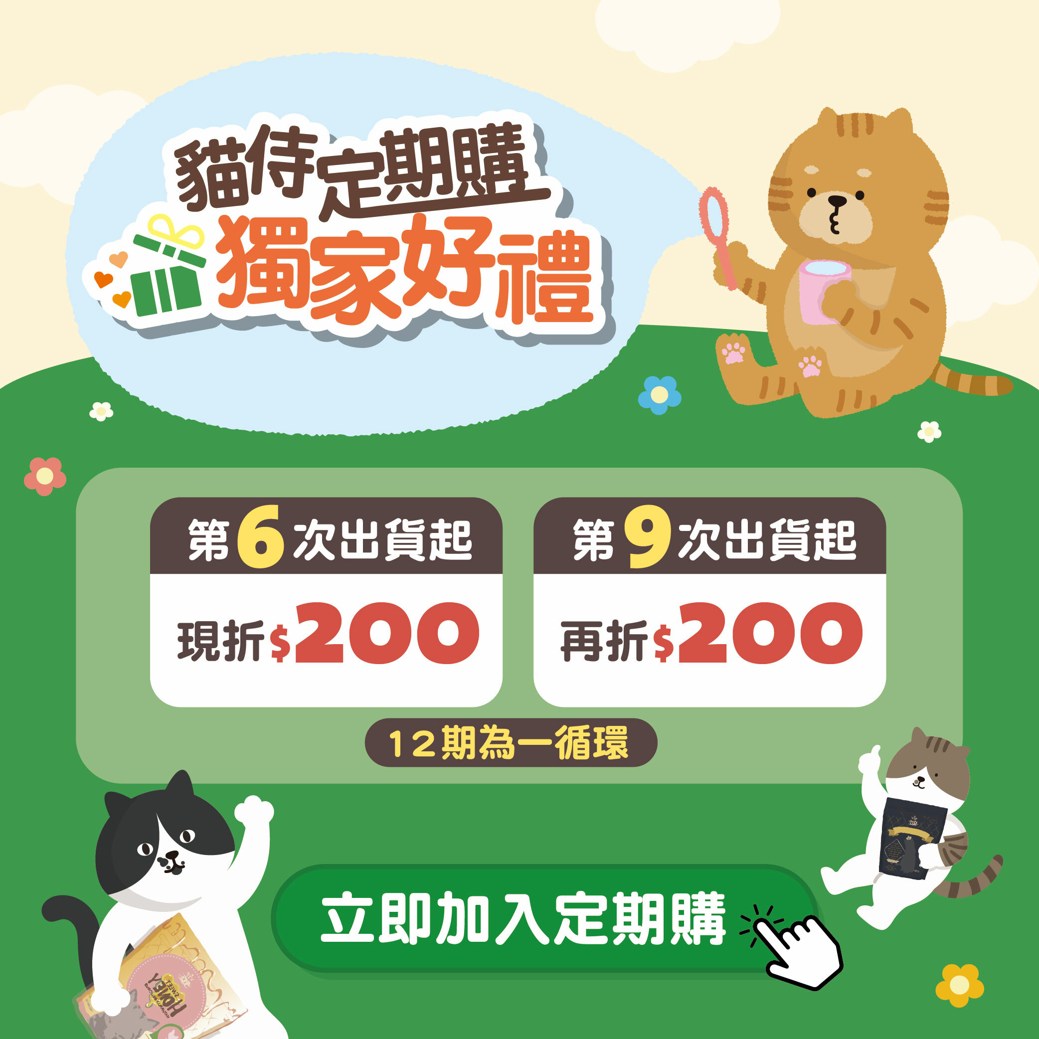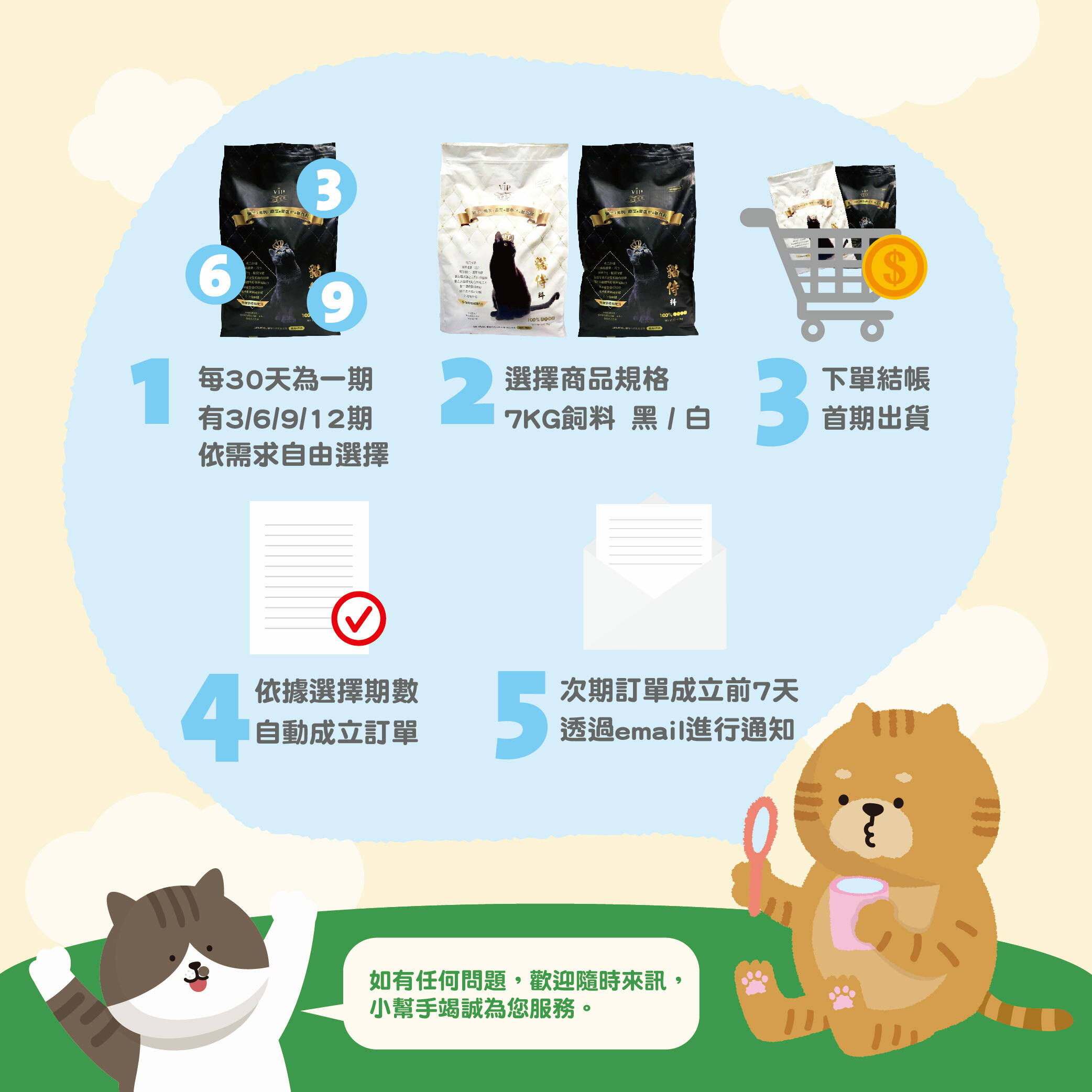 指定定期購商品,飼料定期購(12期為一循環)