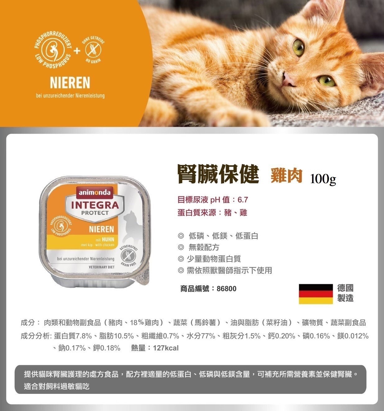 【ANIMONDA 德國阿曼達】專業貓咪處方餐盒100g-腎臟保健(雞肉)