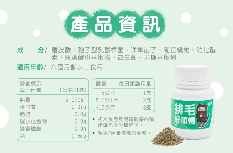 ★由於排毛粉有大量纖維,所以呈現蓬鬆狀是正常現象。