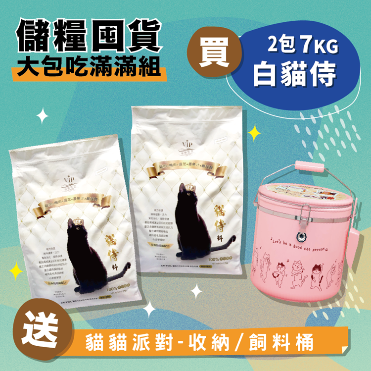 購買白貓侍7KG2包,送貓貓派對-收納/飼料桶(附挖鏟)1個