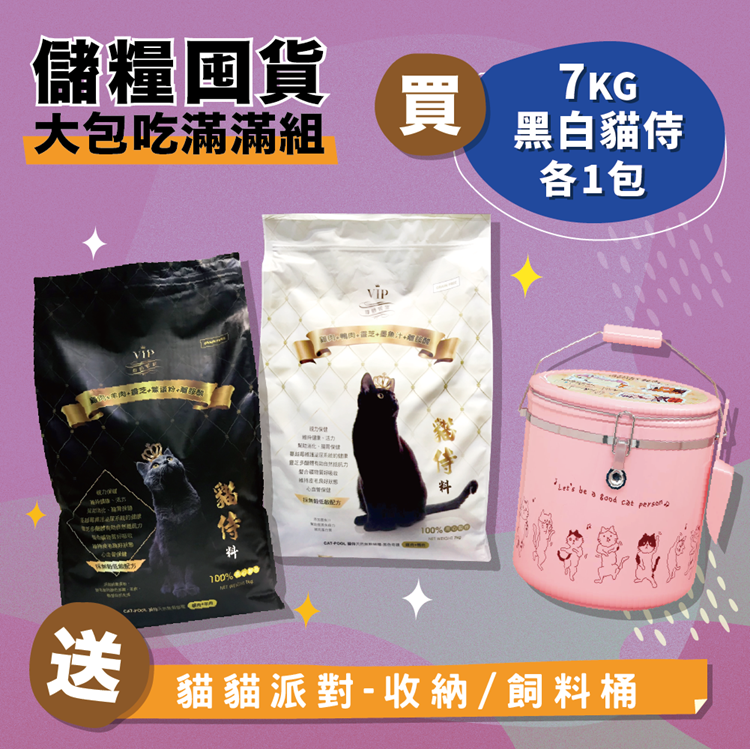 購買黑白貓侍7KG各1包,送貓貓派對-收納/飼料桶(附挖鏟)1個