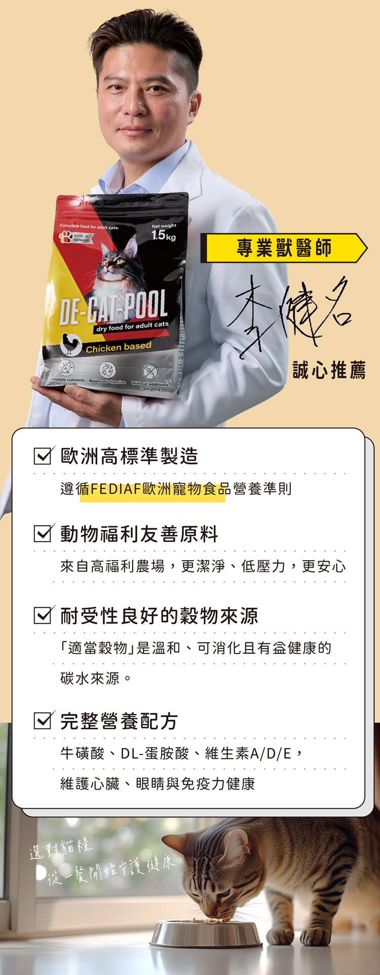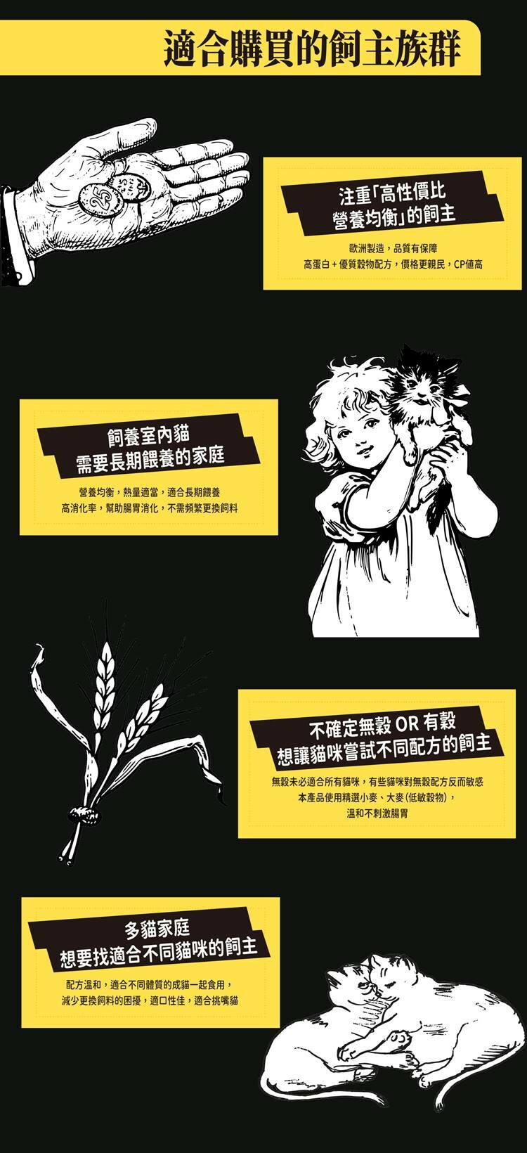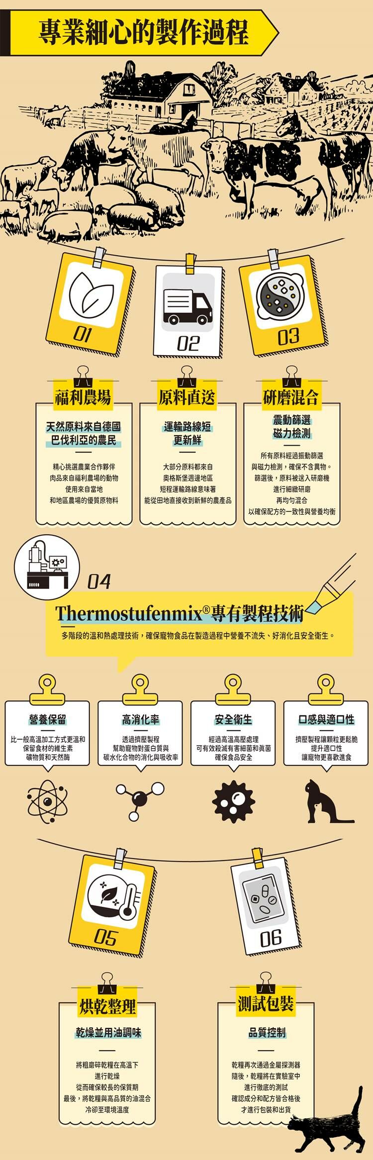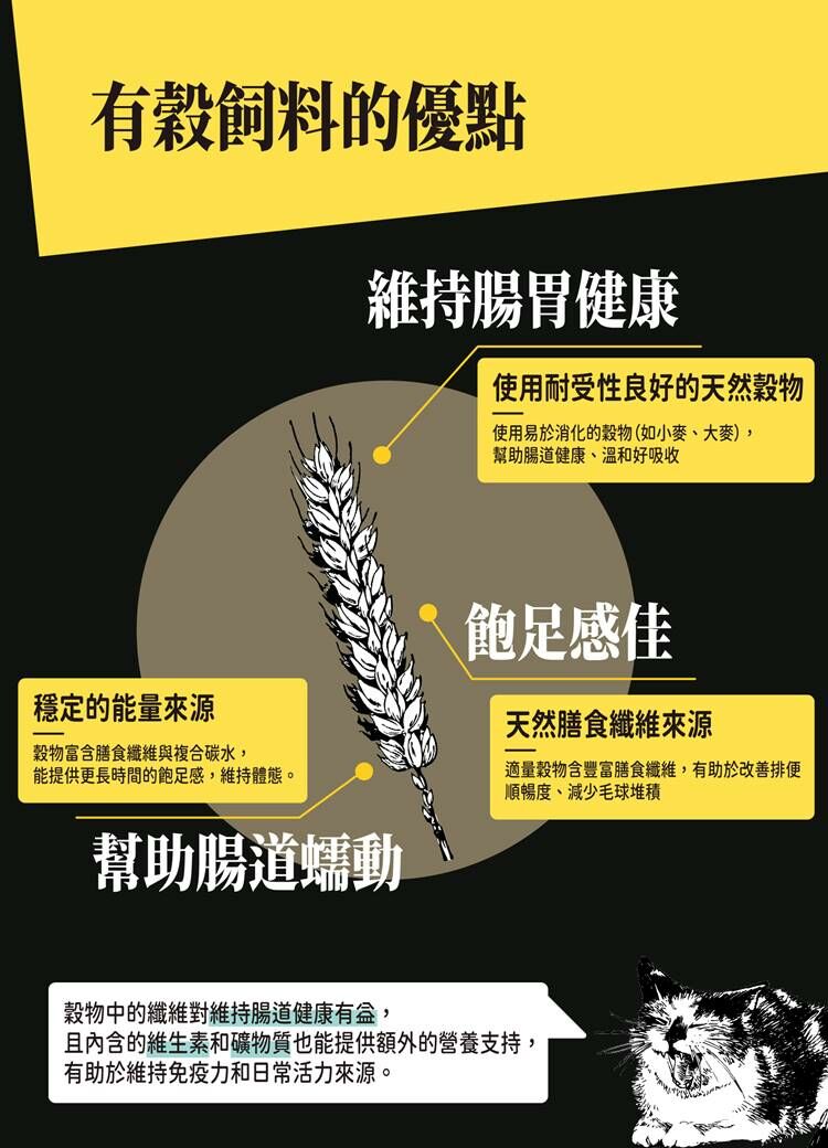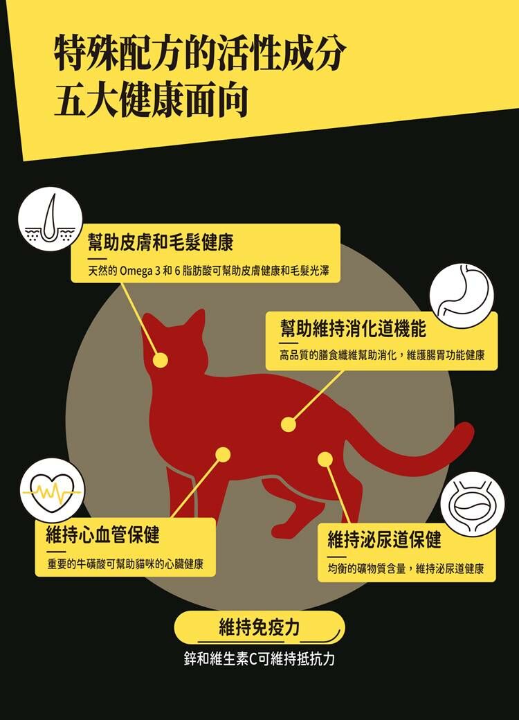 ※化毛配方:添加甜菜纖維、木質纖維素與蘋果泥,維持腸道順暢